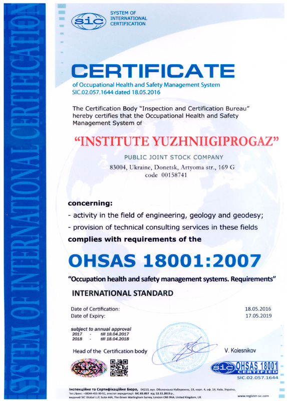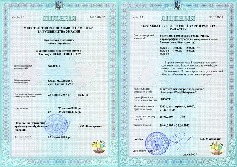 Entitlement of UNGG for performance of design and engineering survey works is confirmed with membership in Russian NP “Design Engineer” and NP “Survey Engineer”, and with certification of specialists for Ukraine.