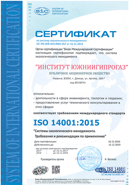• Система экологического менеджмента – требованиям международного стандарта ISO 14001:2017 (сертификат SIC.MS.008. ISO 14001.057 от 16.12.2016)